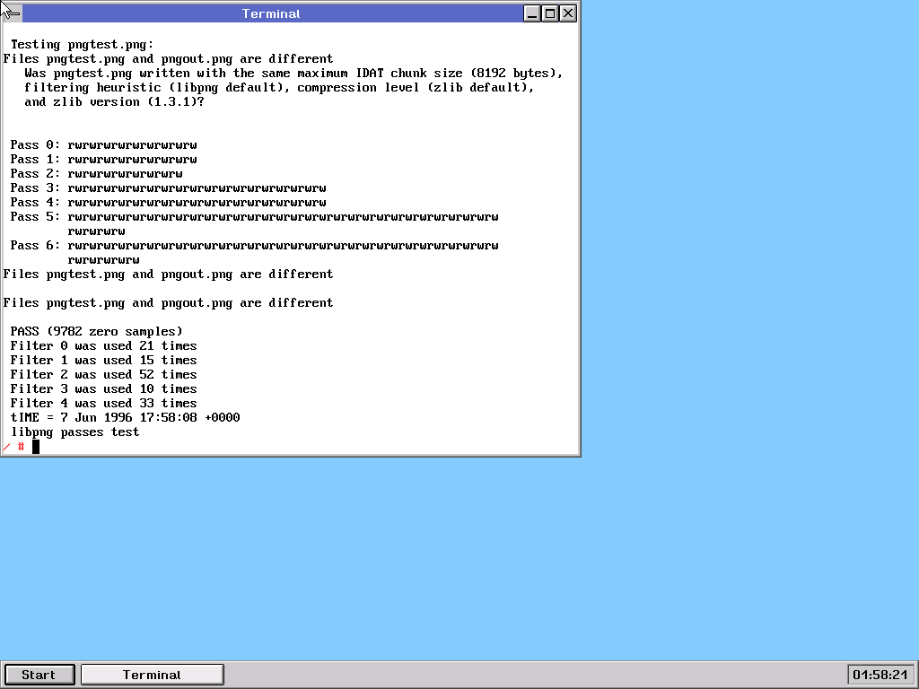 self.machine.boot() File "/var/helenos/ci/htest/vm/qemu.py", line 173, in boot self.capture_vterm() File "/var/helenos/ci/htest/vm/controller.py", line 184, in capture_vterm if self.same_vterm_tail(lines[0:i]): File "/var/helenos/ci/htest/vm/controller.py", line 155, in same_vterm_tail raise Exception("INTERNAL ERROR: same_vterm_tail(i={}, lines={}, full_vterm={})".format(i, lines, self.full_vterm)) Exception: INTERNAL ERROR: same_vterm_tail(i=-2, lines=['???????????????????????????????????????????????????????', '??????????????????????????????????', '???????????????????????????', '??????????????????????????????'], full_vterm=['?']) [2025-09-19 04:00:08,881 QEMU-ppc32 DEBUG] Sending command 'quit' Scenario aborted: INTERNAL ERROR: same_vterm_tail(i=-2, lines=['???????????????????????????????????????????????????????', '??????????????????????????????????', '???????????????????????????', '??????????????????????????????'], full_vterm=['?']) |