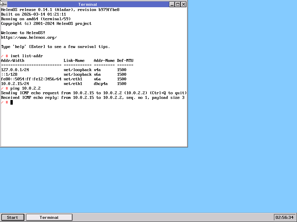 | Repository helenos version | b979ffbe85306f4a2b9b3c98f2311014a3ae021e |