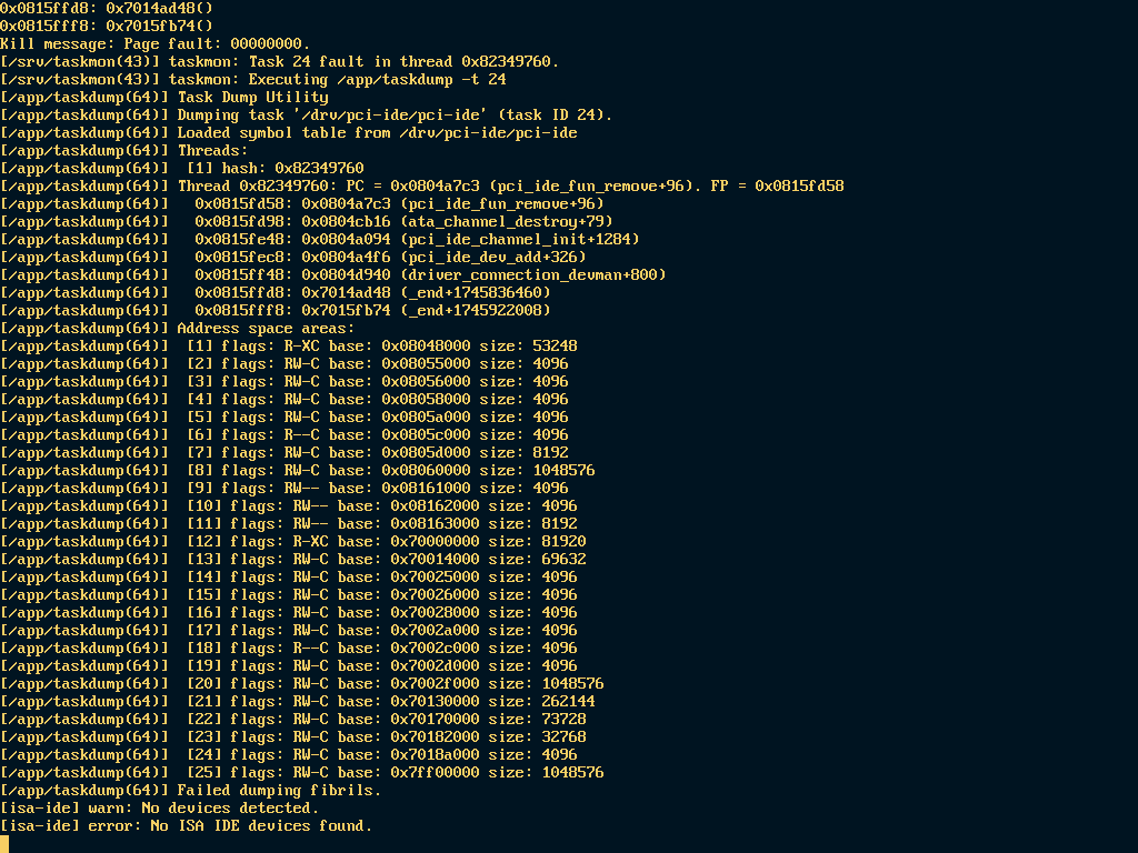 | ia32 | Failed | Last screen, Terminal dump, Serial dump | View (tail) | 3 min 9 s |
