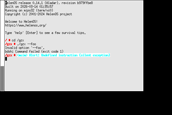 | mips32/msim | Failed | Last screen, Terminal dump | View (tail) | 5 min 30 s |