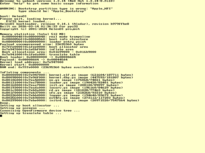 | ppc32 | Failed | Last screen, Terminal dump | View (tail) | 16 s |