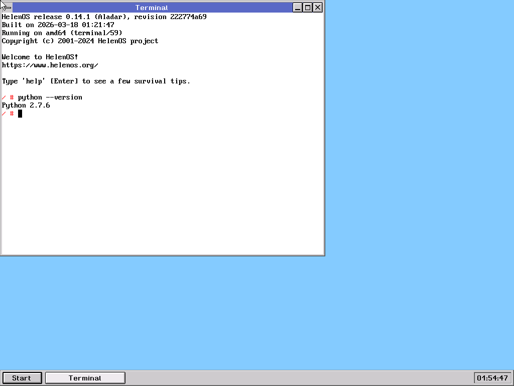 | Repository helenos version | 222774a69b1583c34db4419abfda9fa6a1031f74 |