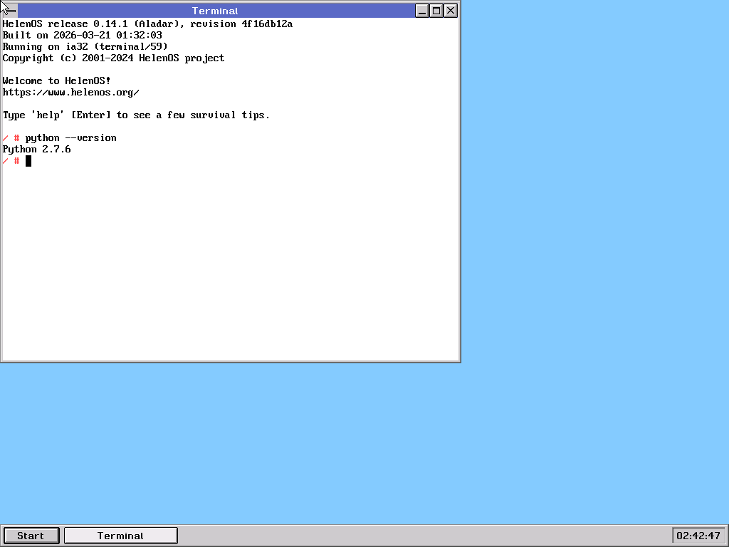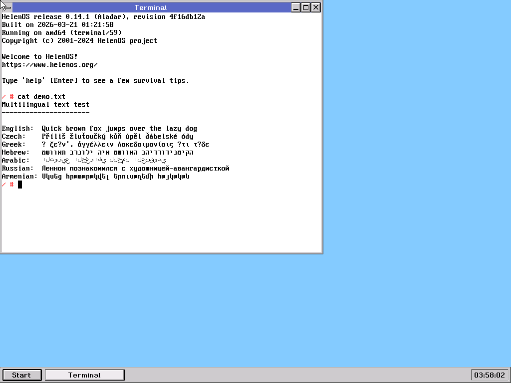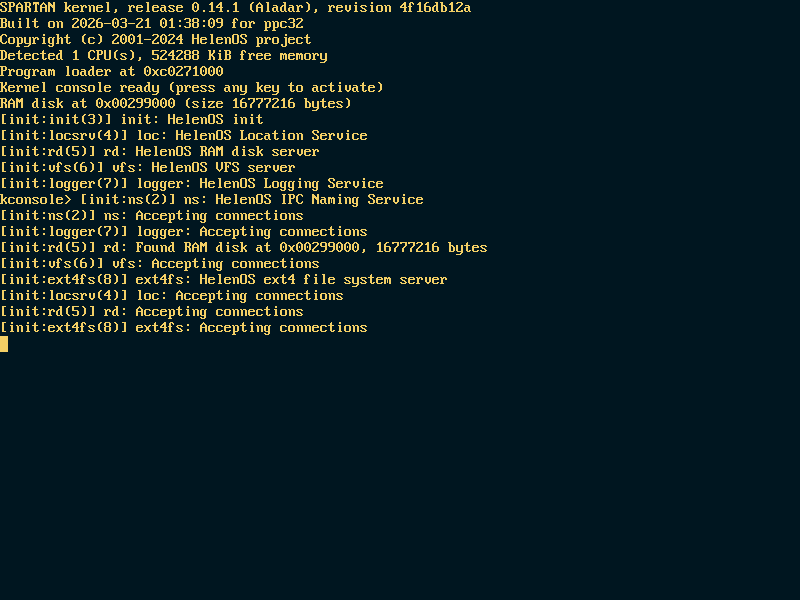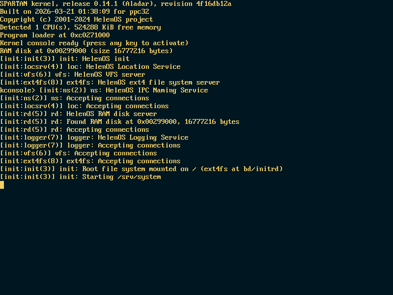 | Repository helenos version | 4f16db12a6eb96c2068777d1b95978d94e4119b1 |